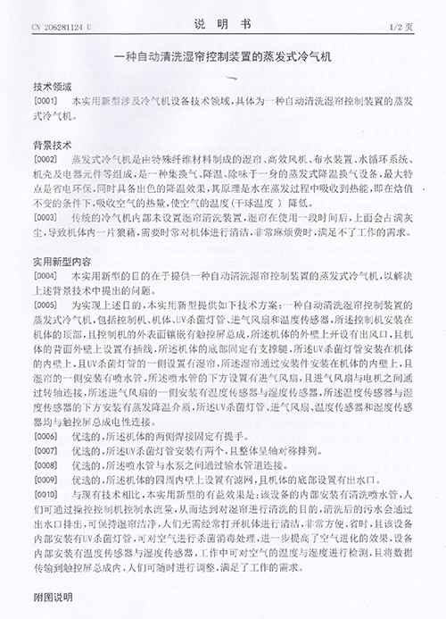 十多年自動(dòng)清洗濕簾專(zhuān)利