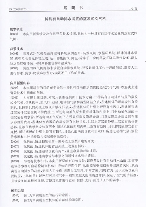十多年具有自動(dòng)排水裝置的蒸發(fā)式冷氣機(jī)
