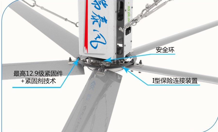 安全的,瑞泰風(fēng)大風(fēng)扇的核心理念,采用10道(安全繩、安全環(huán)、防掉落軸套技術(shù)、I型扇葉鏈接、12.9級(jí)緊固件、防松動(dòng)緊固劑、扇葉加強(qiáng)設(shè)計(jì)、加強(qiáng)型插件設(shè)計(jì)、控制系統(tǒng)過載保護(hù)等)以上安全防護(hù)措施,組件全部采用全球頂級(jí)知名品牌施耐德、威圖、以及德國(guó)動(dòng)力技術(shù),做到絕對(duì)的萬(wàn)無(wú)一失。